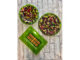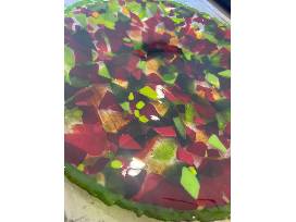 Three handmade glass plates sparkling ilike a kaleidoscope by Jeri Webb.
