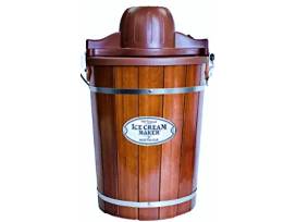 6 Quart Nostalgia Electric Ice Cream Maker, Soft Serve Machine with Easy-Carry Handle for Ice Cream, Frozen Yogurt, or Gelato- Dark Wood Finish.