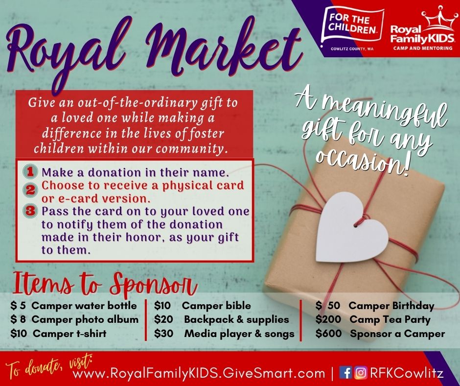 To help us reach even more children, CLICK HERE to set up a recurring donation. Be sure to specify "Royal Family KIDS - Cowlitz County" as the designated fund.