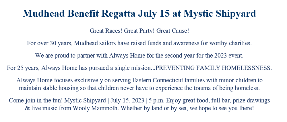 Mudhead Benefit Regatta July 15 at Mystic Shipyard