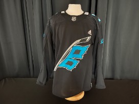 Former Carolina Hurricane Brendan Smith #7 warm-up worn Carolina Panthers Theme Night jersey worn on April 8, 2022 vs. the New York Islanders. Size 56. This Jersey does not have the potential to be signed.