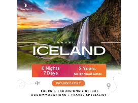 Thundering waterfalls, glistening glaciers, bubbling hot springs, and amazing wildlife make Iceland "The Land of Fire and Ice." This thrilling 7-day journey for 2 to Reykjavik includes round trip flights, 6-nights at a 4-star luxury hotel with breakfast, city walking tour, and tours of the Golden Circle and Blue Lagoon.