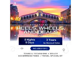 Picture it: you and a companion arrive in Milan where your guide will take you to couture design shops, to see art from the Renaissance masters, and savor some of the best Italian food in the world. You'll enjoy a day trip to Switzerland for deep designer discounts at Gucci, Prada, Versace, and more. Next, a jet-like train will take you to Maranello where you'll tour the factory where Ferraris are built by hand and get a chance to sit behind the wheel for a thrilling test drive in a real Ferrari! Finally, you'll reach Venice where you can cruise to islands in the Venetian Lagoon or perhaps enjoy a moonlit gondola ride before retiring to your elegant canal front hotel.