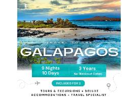 Are you ready for an experience unlike any other? A place where sapphire waters fade into golden sand and unspoiled wildernesses? Get ready to escape to the Galapagos Islands! This bucket-list trip for two includes 9 nights' deluxe accommodations, day tours of Quito, Bartolome Island and San Cristobal, transfers between cities, and a magnificent memory mosaic that will stay with you forever.