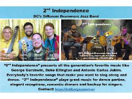 DC's Different Drummers Jazz Band offers a special 1-hour private performance by their "2nd Independence" ensemble for a dance party, elegant reception, romantic dinner.