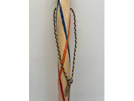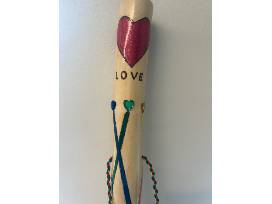 Expertly crafted and sanded to a flawless finish, it features intricate wood-burning, vibrant hand-painted details, and sparkling plastic heart gems that catch the light with every movement. Sealed with multiple coats of polyurethane for lasting protection, this one-of-a-kind piece is finished with a braided lanyard and a non-slip rubber tip. A symbol of love and unity, this staff is more than just an accessory-it's a work of art. Don't miss your chance to own this extraordinary creation!