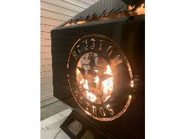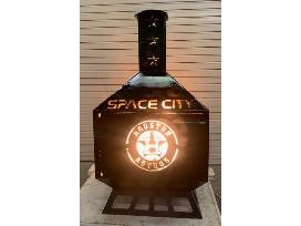 Your backyard will be the envy of the neighborhood! This 2x2 Foot gas/propane powered Astros firepit was custom built by the Atascocita High School Ag Mechanics students. Propane can be removed to burn wood if chosen.