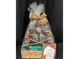 This basket will help you start your day with a cup of coffee! Basket includes single serve Keurig Express, 4 boxes of K-cups, syrups, cups, 3 packages of Dunkin Donut Original Coffee Beans, biscotti and cookies.