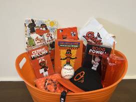 You'll be the best-dressed fan at Camden Yards with this basket full of Orioles merchandise! The additional collector's items also fit perfectly alongside other signed baseballs and vintage baseball cards. Show your spirit by bidding on this fantastic item!