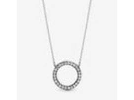 Bring your outfit full circle with this sparkling necklace crafted in sterling silver. The reversible pendant is framed with shimmering stones on one side and embossed with the Pandora logo on the reverse - enabling you to create two different looks. For extra versatility, the delicate chain is adjustable to three different lengths.