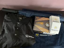 This gift includes a Men's Short Sleeve XL Cutter& Buck Golf Shirt. 12 Callaway Warbird 2.0 Golf Balls. A Webster Bank Golf Towel. A Blue Webster Bank Golf Umbrella and 4 Packs of Golf Tees