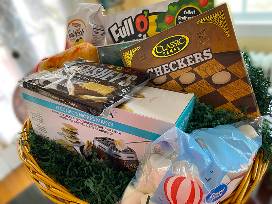 Comfy pizza throw blanket, s'mores maker with all the ingredients (marshmallows, hershey bars and graham crackers), Wizard of Oz puzzle, games and party snacks.