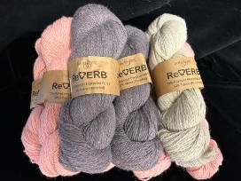 8 skeins of Cascade Yarns, 70% Polyester (Recycled PET)/30% Alpaca (Recycled). Enough to create a sweater or a baby sized blanket.