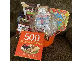 Hamilton Beach Quesadilla maker, $25 Geisslers card, sangria pitcher, pomegranate cocktail mix, black bean salsa, soft mango chewies, and Mexican cookbook
