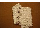 Stay warm this winter with a beautiful, hand knit infinity scarf. The winter white shade will complement most any outfit, and the walnut shell buttons add a unique and natural detail to this beautiful scarf! Donor: Julie Lebahn