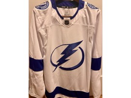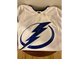 This Tampa Bay Lightning jersey is signed by defenseman Mikhail Sergachev!