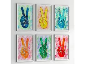 6 Pack of Peace Out Prints from Glitter Enthusiast. 11" x 14". Museum grade paper. Matte finish. Can be hung with double-sided tape or framed.