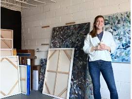 In her seascapes and petal series, Megan uses many layers of colorful paint and unique textures to capture the awe of nature. She works on multiple paintings simultaneously and articulate nature through loose, expressive brush strokes. The acrylic paint is applied directly to the canvas, without any underpainting or sketch below, and blended into many layers by adding white to create tonal variations of color. These layers create the effect of movement, light, and texture.