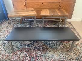 Hard rock maple with black stain, with stainless steel frame