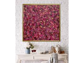 Whether you're looking to add a bold statement piece to your living room, bedroom, or office, this abstract art piece is sure to impress. The combination of warm pink and metallic gold hues create a sense of luxury and sophistication that will elevate any space.