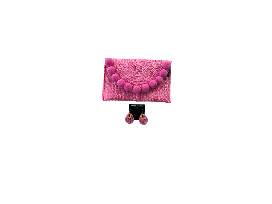 Pink Straw Clutch with Pink PomPoms, Pink Earrings, & Lilly Pulitzer Gold Leopard Cuff