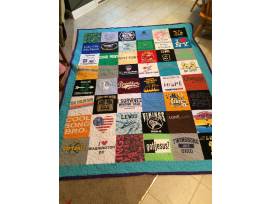 This item is perfect for a graduation gift! Display memories from high school, college, sports career, theater productions, or any number of other collections! Let Barb piece together those old sentimental t-shirts into a beautiful, functional keepsake that celebrates accomplishments of years gone by! Quilt can include t-shirts, sweatshirts, jerseys and more! They will be quilted together with a border in between.