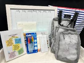 Pack-It Cubes, Rifle Paper Co. Stickies, Sugar Paper Shopping list/Meal Planner pad, Clean Mama Weekly Cleaning Checklist, Wall Calendar & Markers, and Bottle Organizer!