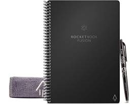 The Rocketbook Executive Size Fusion is a reusable pen and paper notebook that connects to the cloud using your mobile device! Simply write, scan and then erase your pages using a damp cloth.