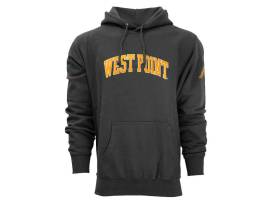 Pullover drawstring hooded sweatshirt with WEST POINT arched across the chest and the Army Motion A on the left sleeve.