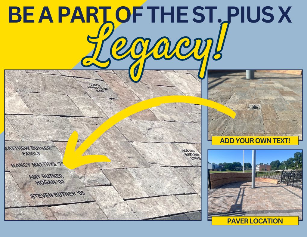 As part of the beautification at the St. Pius X Stadium, we have created a welcome plaza of personalized paver bricks. What a great way to place your name, special graduate, teacher, friend, relative, or anything that will fit on a paver as a lasting legacy! We hope you will be part of St. Pius X High School history as we honor those who've come before and pave the way for the next generation of Warriors!