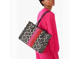 Jacquards are part of our heritage almost as much as nylon. They're unique fabrics: highly-textured with patterns that are woven instead of printed. For this collection we wanted to do something totally new with our signature spade flower pattern. We looked to Limonta, a centuries-old, family-owned textile mill in northern Italy near Como. They've been producing and experimenting with jacquards for over 100 years and are one of the world's most renowned mills. Here, we've used our new Spade Flower Jacquard (topped with stripes, another element reimagined from our archives) on our Market medium tote-a bag that holds everything with pockets to organize it all.