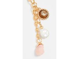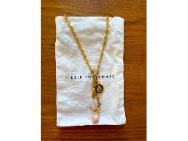 Composition: Gold-plated brass, marbled pink stone, Freshwater Pearl, Tortoise charm, green Amethyst