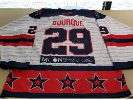 You're bidding on a signed, game worn 2023 Celebrity Hockey Face-off Colonials white #29 Phil Bourque jersey!