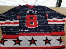 You're bidding on a signed, game worn 2023 Celebrity Hockey Face-off Colonials navy #8 Logan Bittle jersey!