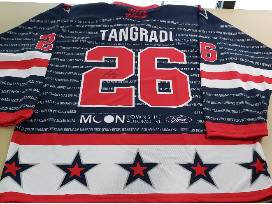You're bidding on a signed, game worn 2023 Celebrity Hockey Face-off Colonials navy #26, former Pittsburgh Penguin, Eric Tangradi jersey!