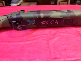 Custom Made CCA Logo Weatherby 22-250 - CCA and Weatherby have teamed up to make a custom Vanguard in an old school camo look. You won't be able to find this 22-250 in stores!! We have also branded this amazing rifle with CCA Texas. The U.S. Postman's creed, with a few little changes, is the Weatherguard in a nutshell: "Neither rain nor snow, nor sleet nor dark of night shall stay the Vanguard Weatherguard from the swift completion of its appointed rounds." As the name implies, the rifle is fully guarded against weather - so take the Weatherguard into the nastiest environments without a single worry about how it will perform. The Monte Carlo stock is made of ultra-tough Griptonite and all the metalwork has maximum protection with a great-looking Cerakote finish. Donated by Weatherby and CCA Texas