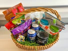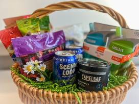 Experience the great outdoors with a gift that's perfect for adventurers! A day hiking treat basket provides with drink cups and snacks for the kids, and adult beverages to explore nature in style.
