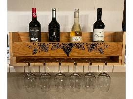 HANDCRAFTED HANGING WINE RACK WITH GLASSES