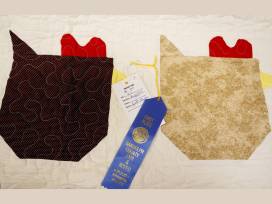 This quilt top and edge binding was sewn by Willa Jenkins and was quilted by Paula Tucker. It is 62 " x 51 " in size and is in a design called the Funky Chicken!