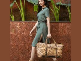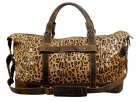 Animal print luxury, hand woven overnight bag.