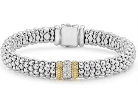 A signature pavé diamond Caviar bracelet with 18K gold accents. LAGOS diamonds are the highest quality natural stones.