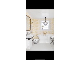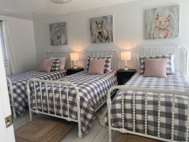 Three bedrooms and two bathrooms, designer kitchen, fireplaces, and fabulous soaking tub. The back porch swing is the perfect spot to watch the sunset over the property.
