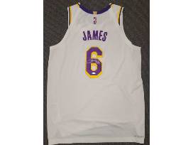 Featured is a LeBron James signed Los Angeles Lakers white basketball jersey. This jersey was hand signed by LeBron James and authenticated by Los Angeles Lakers authentication services.