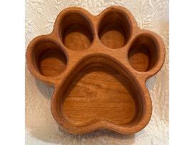 The Dog Paw Bowl is made of layers of wood glued up to form a block. Then the paw is carved out. Use it when making tacos, or for dips when you have company. The boards are completely food safe.