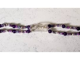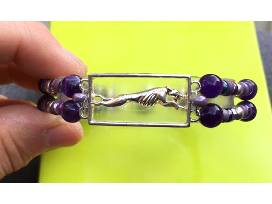 This beautiful bracelet features a framed running greyhound, with purple glass beadwork. A secure magnetic clasp makes it so easy to put on.
