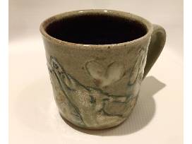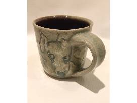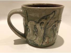 The stoneware mug was wheel thrown and individually carved to represent the magical hounds I have loved.
