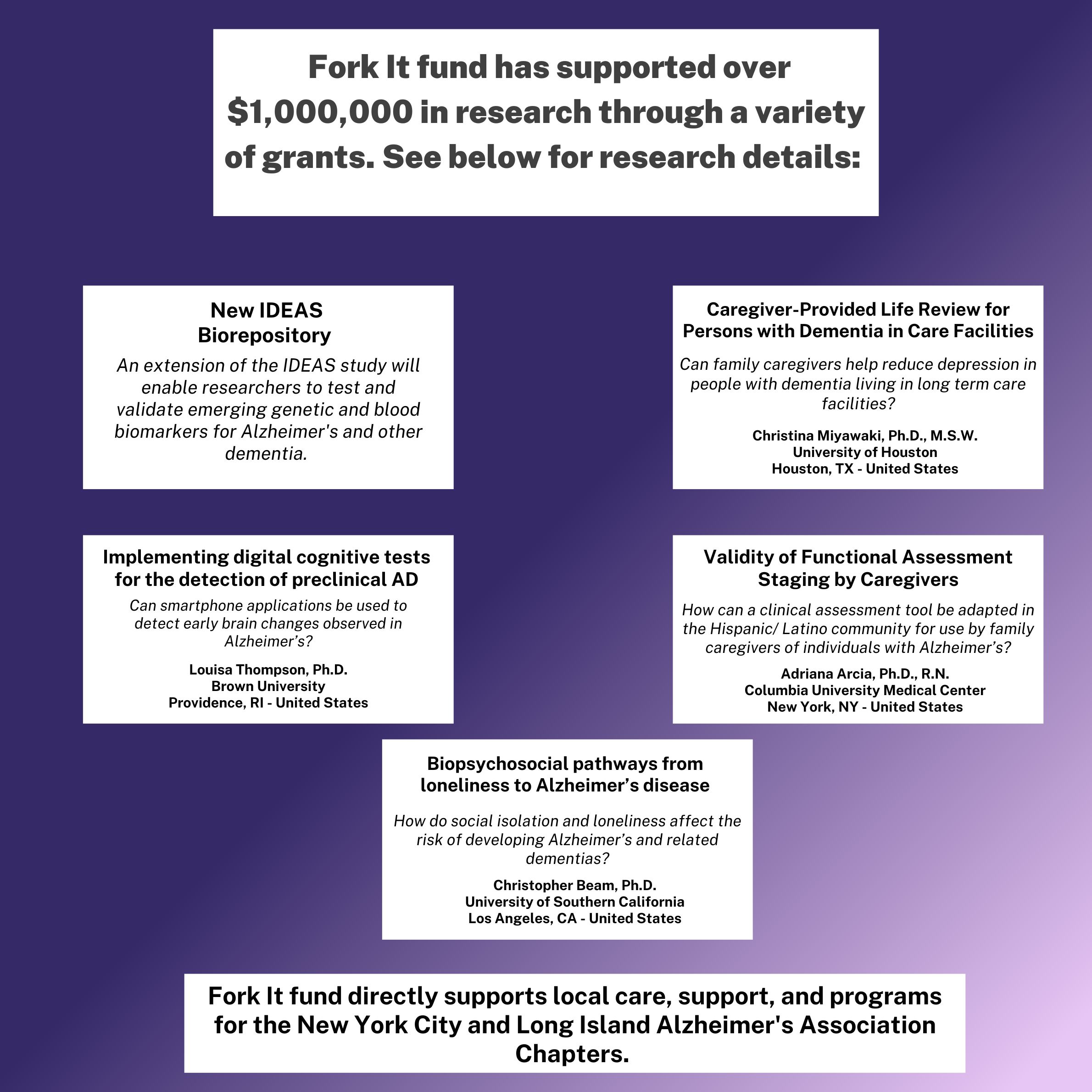 Thanks to your efforts, since our inaugural event in 2019, Fork It Alzheimer's has partnered with the Alzheimer's Association to advance the development and application of innovative technology to improve dementia care and accelerate research toward the Association's vision of a world without Alzheimer's and all other dementia.