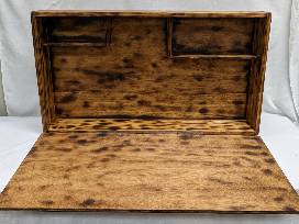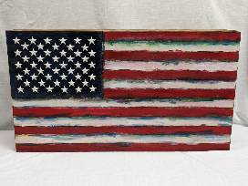 Mrs. Wootten's first graders painted this rustic wood American flag, inspired not only by love of country, but by the notion that they'd blend all of the different colors that represent the USA together within the red, white, and blue. This rustic burned-wood bourbon cabinet is a must-have for any home, as it also provides the perfect storage for barware, bottles and more.