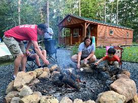 The cabin features 1 bath, 1 bed, 1 sitting area and a small kitchen. Located about an hour from LCDS.