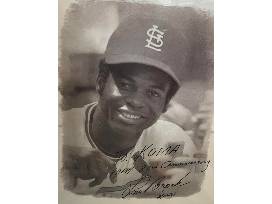 An amazing piece of Cardinals memorabilia is part of this package: an autographed and framed Lou Brock poster, which lists his career stats.